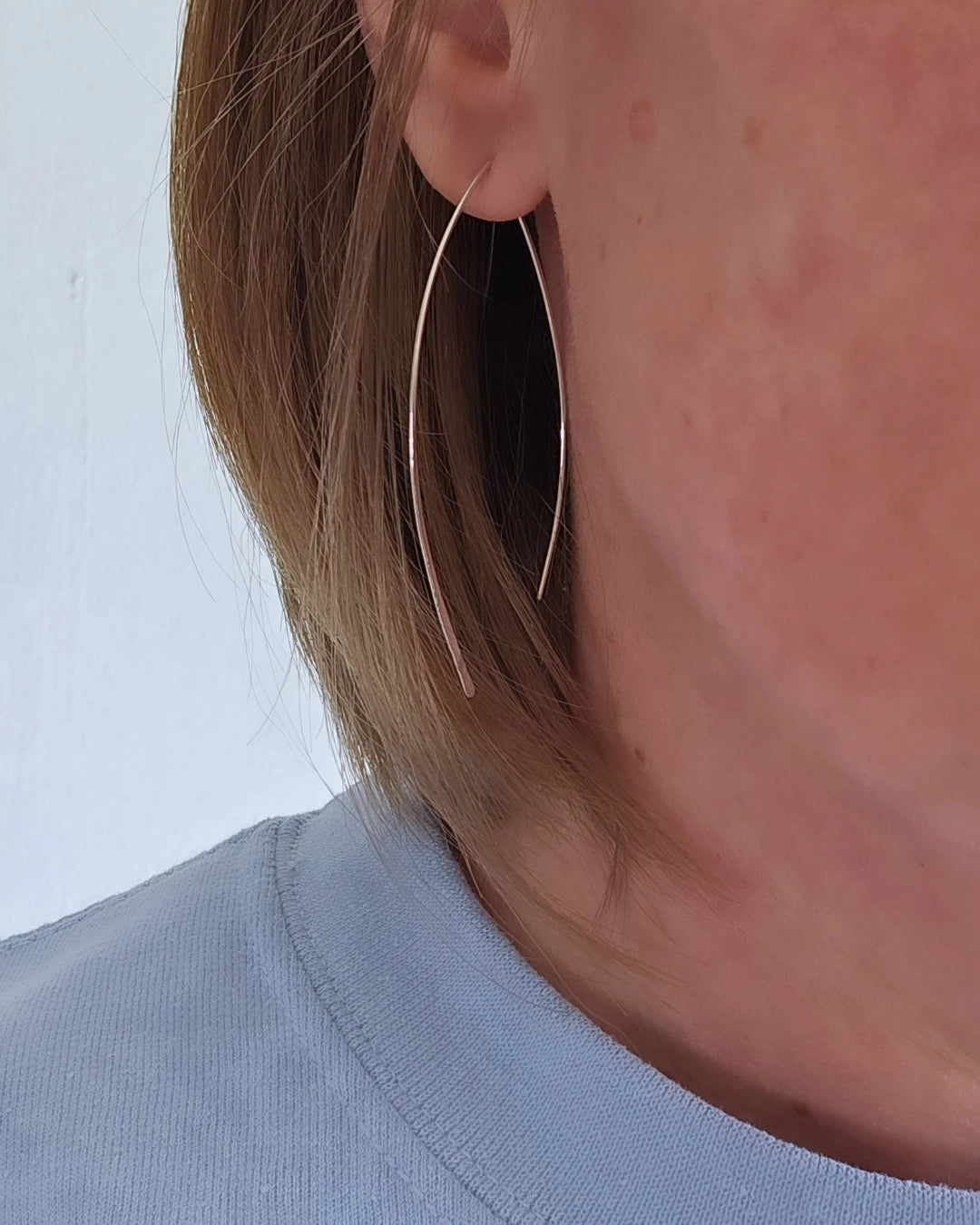 Introducing Argentium Silver Arches, expertly handcrafted for premium quality and longevity. Made with the finest argentium silver, these arches offer a sleek and modern design, perfect for any occasion. Enjoy the benefits of owning this high-quality metal product with its superior durability and elegant appearance. 20 gauge for easy wear and feel! Slightly hammered on the end for a wonderful artisan look!