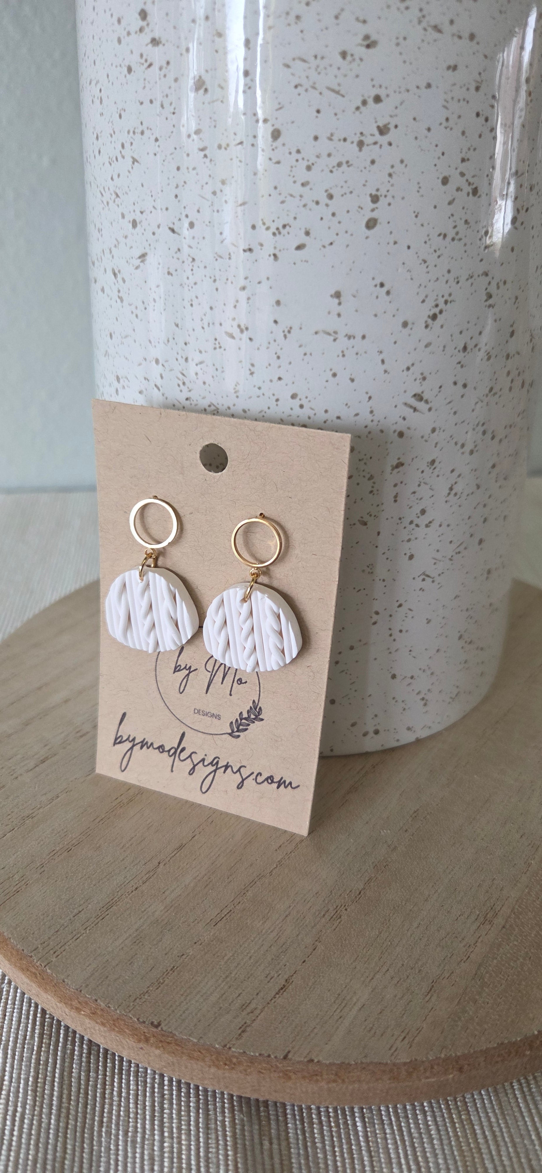 Each pair is handcrafted from lightweight polymer clay, pressed with delicate sweater-like texture, and finished with hypoallergenic stainless steel posts for all-day comfort. Perfect for adding a touch of warmth and style to any outfit — whether you’re dressing up for a coffee date, a cozy weekend, or a seasonal event.