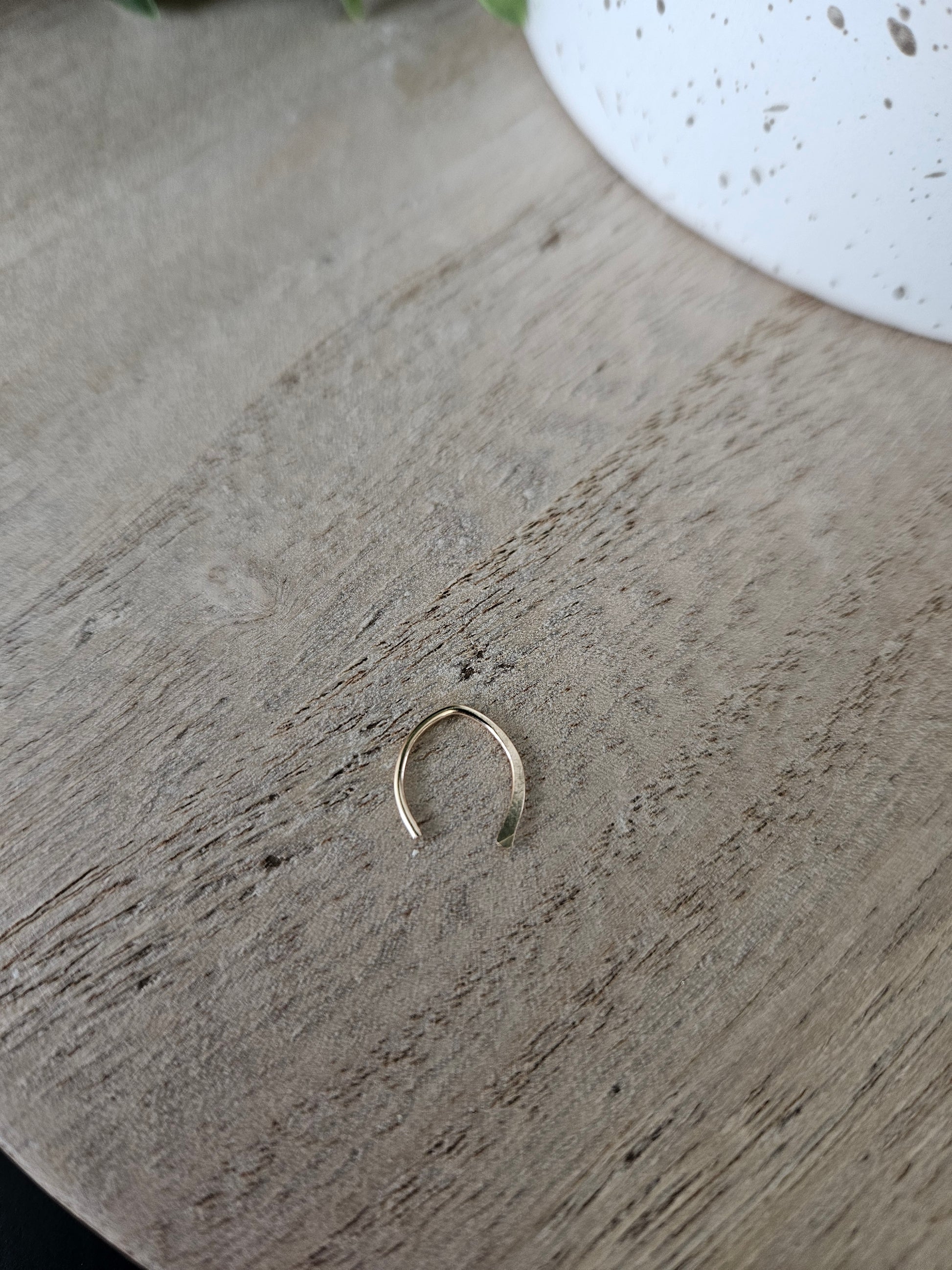 20 gauge gold-filled wire used for comfort also a slight hammered end for an artisan look!