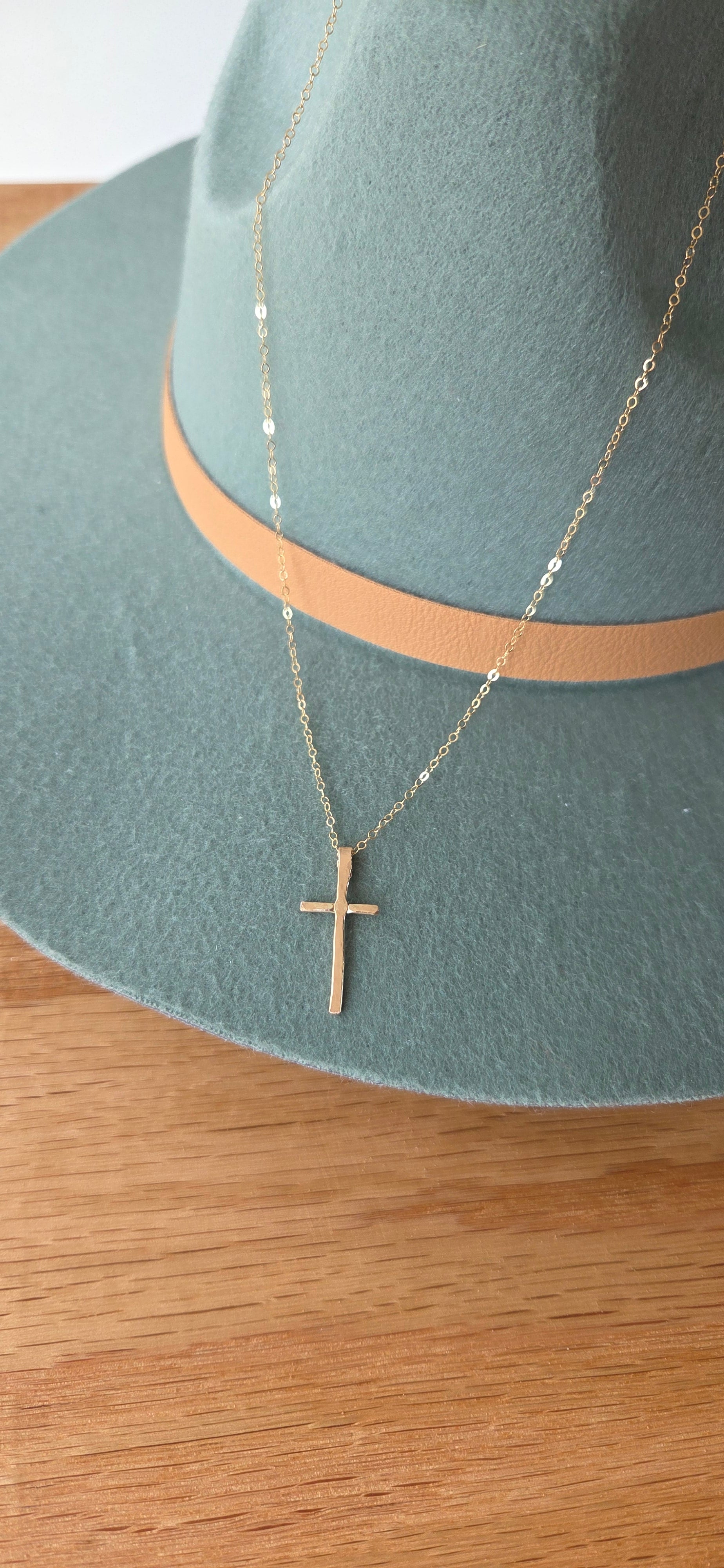 Style: artisan handcrafted hammered cross minimal